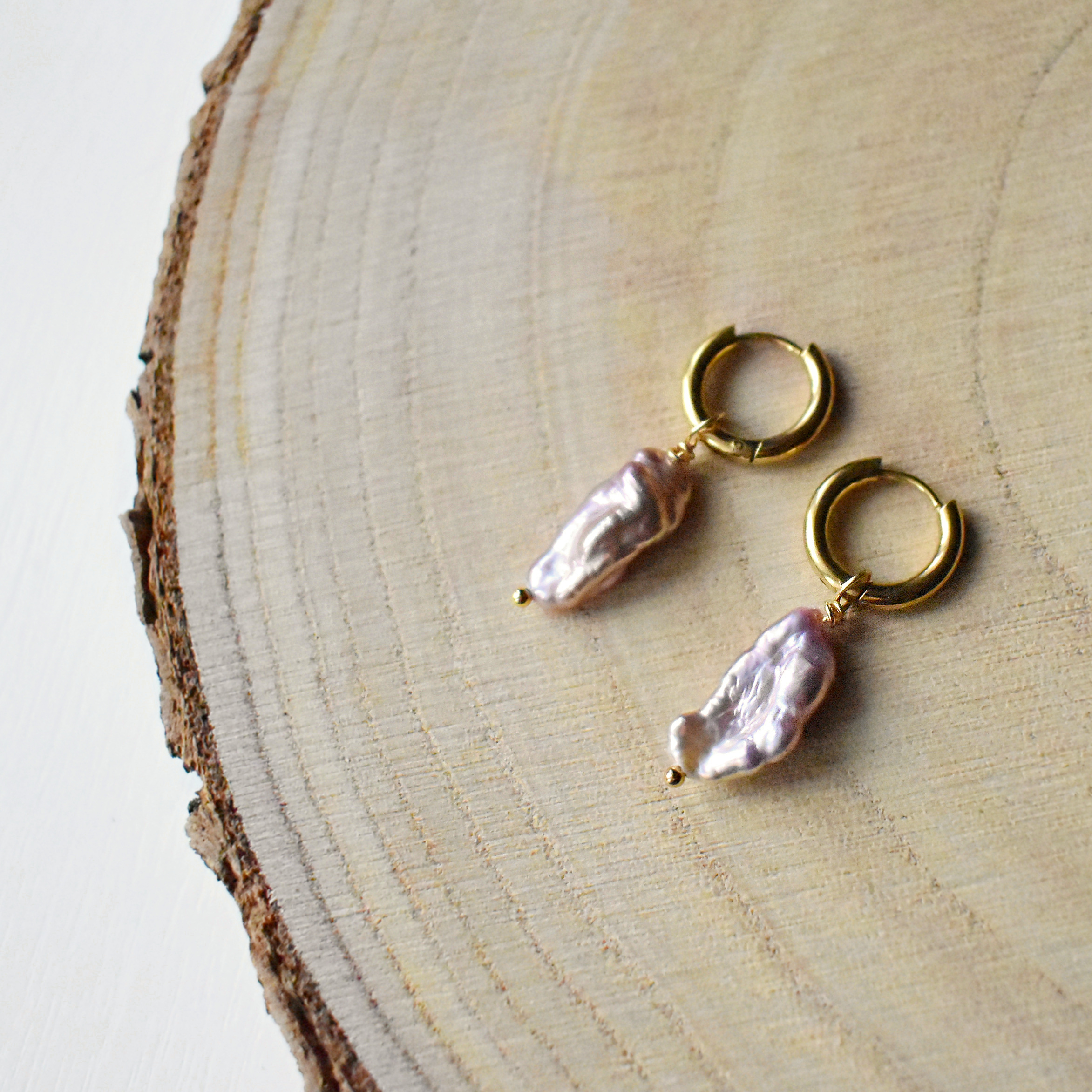 Náušnicové kroužky se zavěšenou barokní perlou.