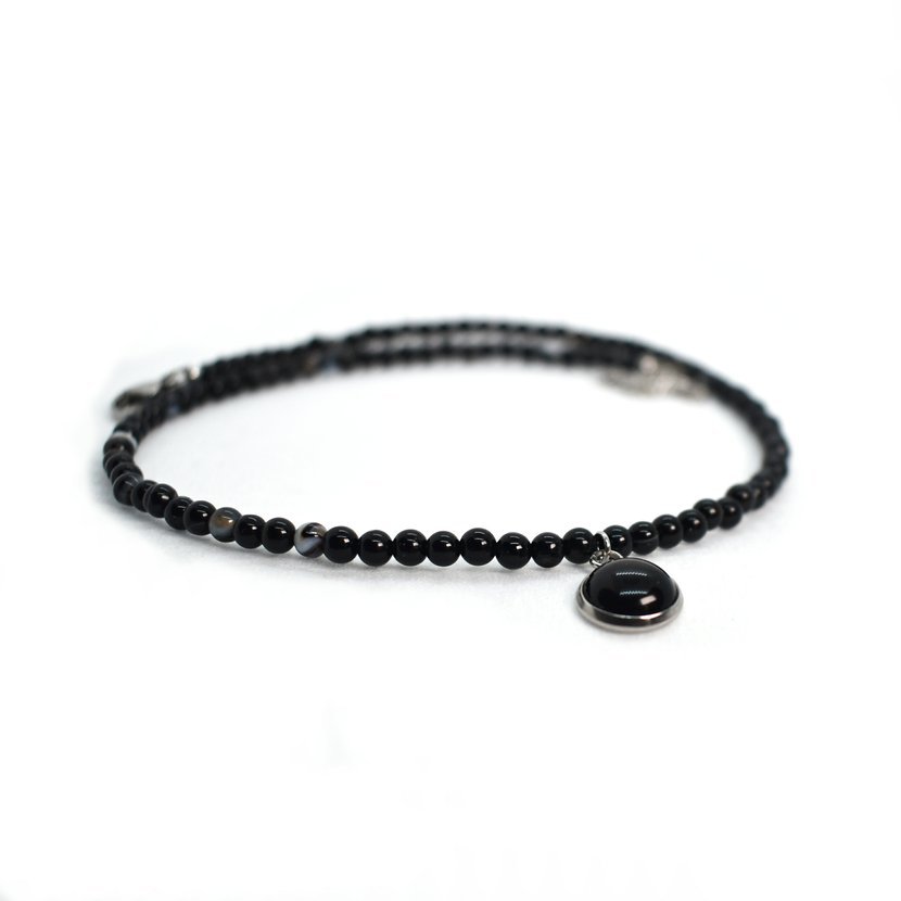 Náhrdelník chocker z drobných korálků černého achátu s přívěškem téhož kamene.