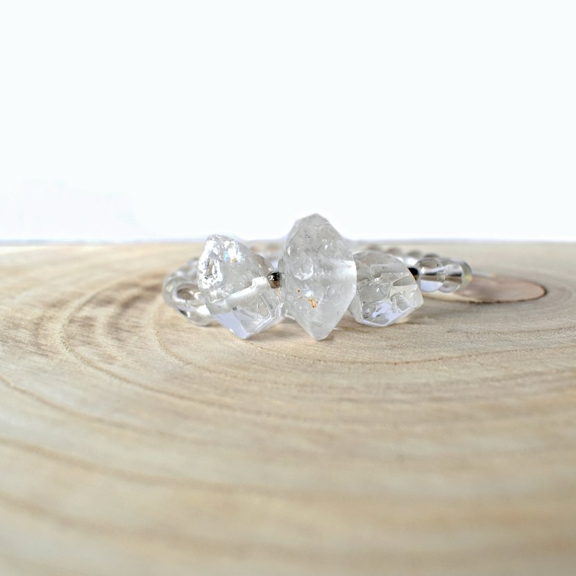 Větší surové křišťály, doplněné o kulaté 6 mm korálky