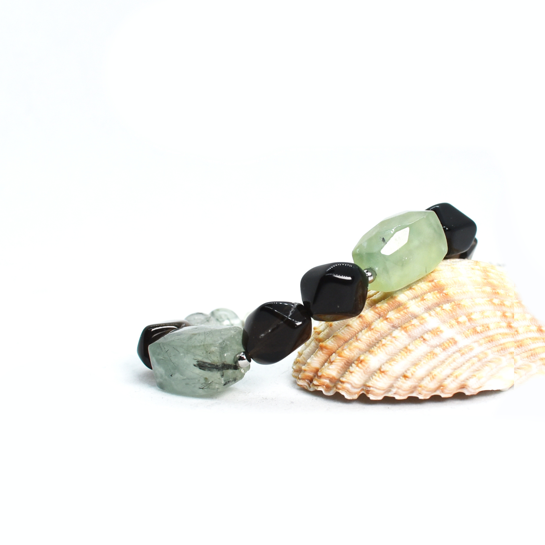 Větší broušené křišťály, záhněda a přehnit, doplněné o kulaté broušené 6 mm korálky