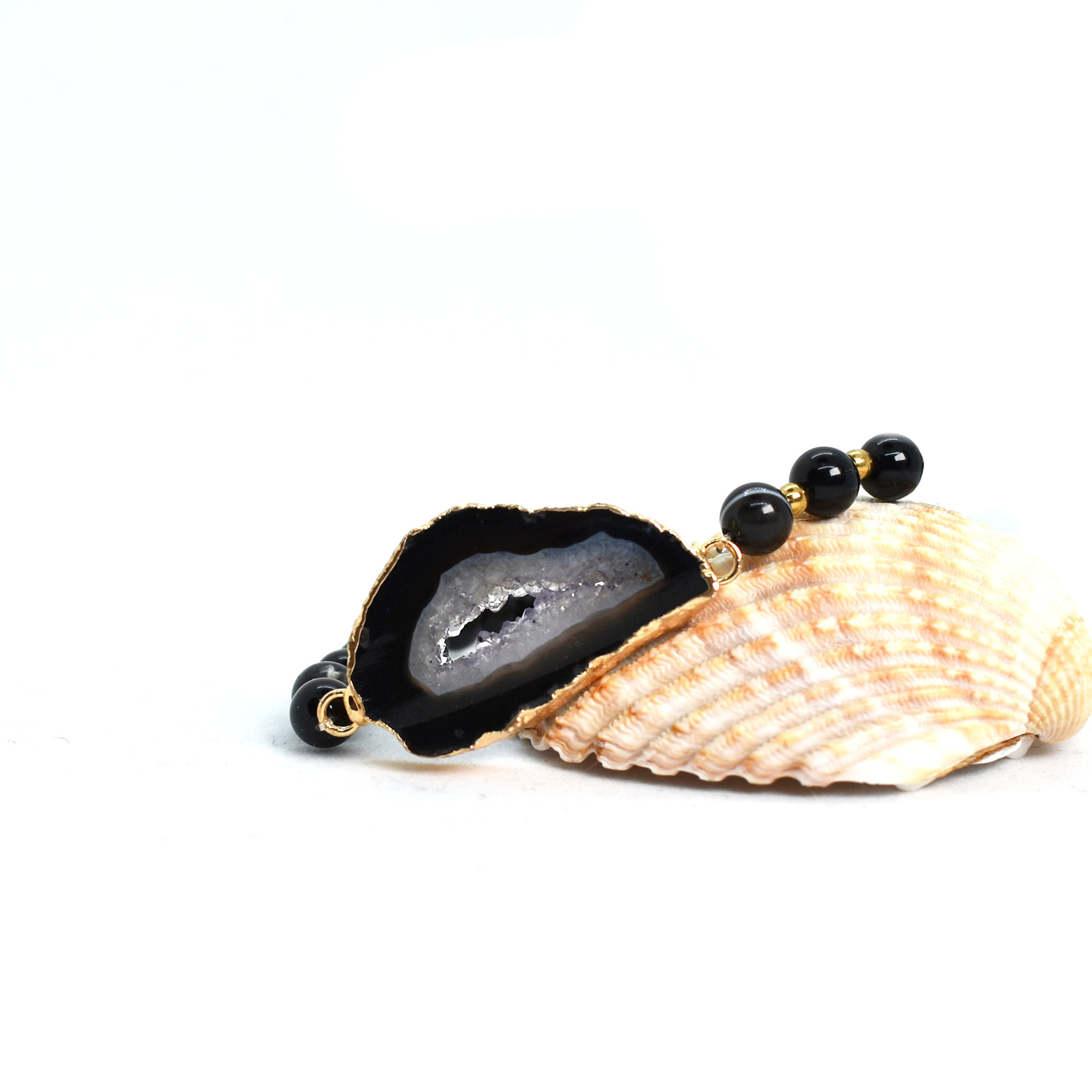 Geoda černého onyxu cca 4 x 2,5 cm, doplněno o kulaté 6 mm korálky