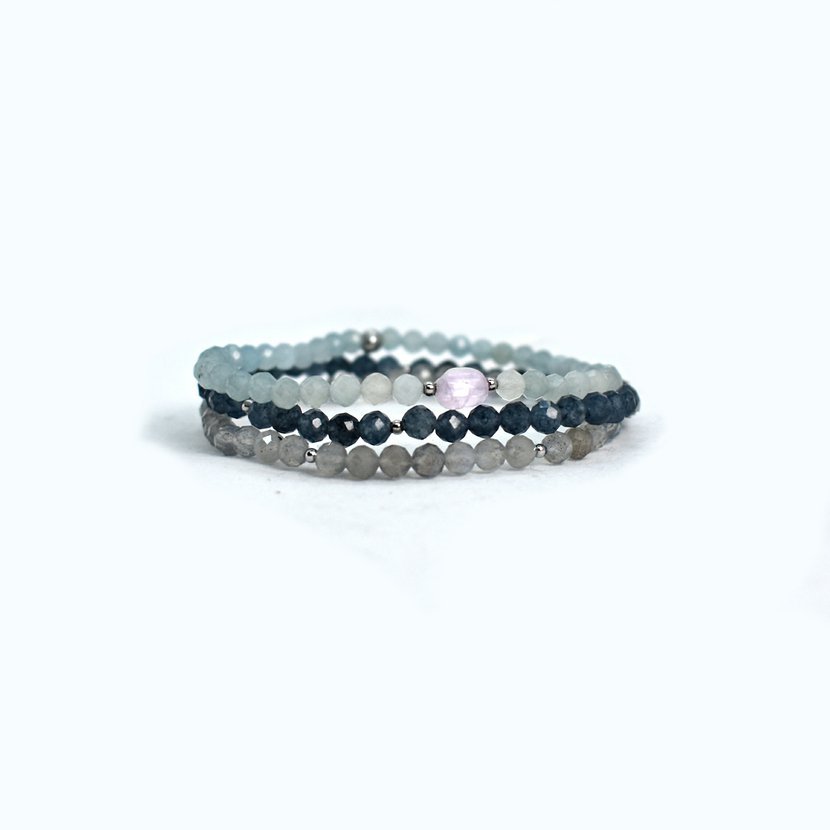 Sada náramků z akvamarínu, labradoritu a safiru