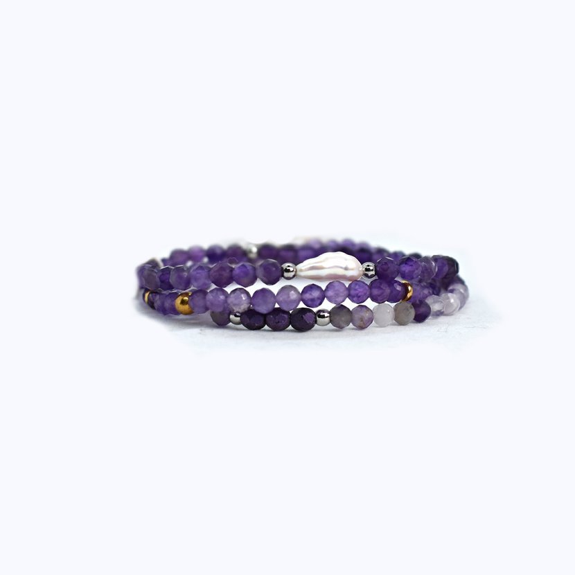 Sada náramků z ametystu s říční perlou