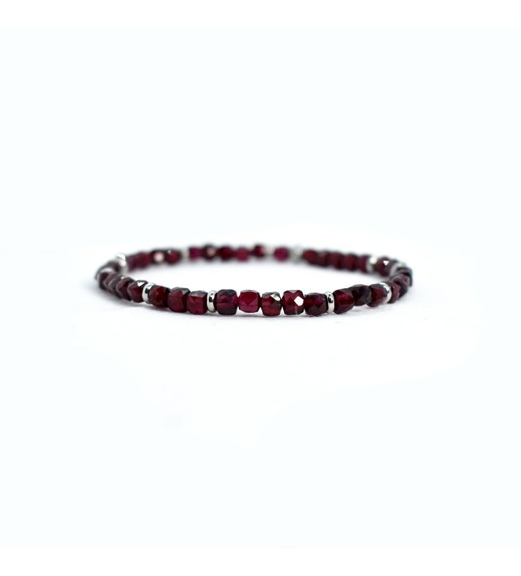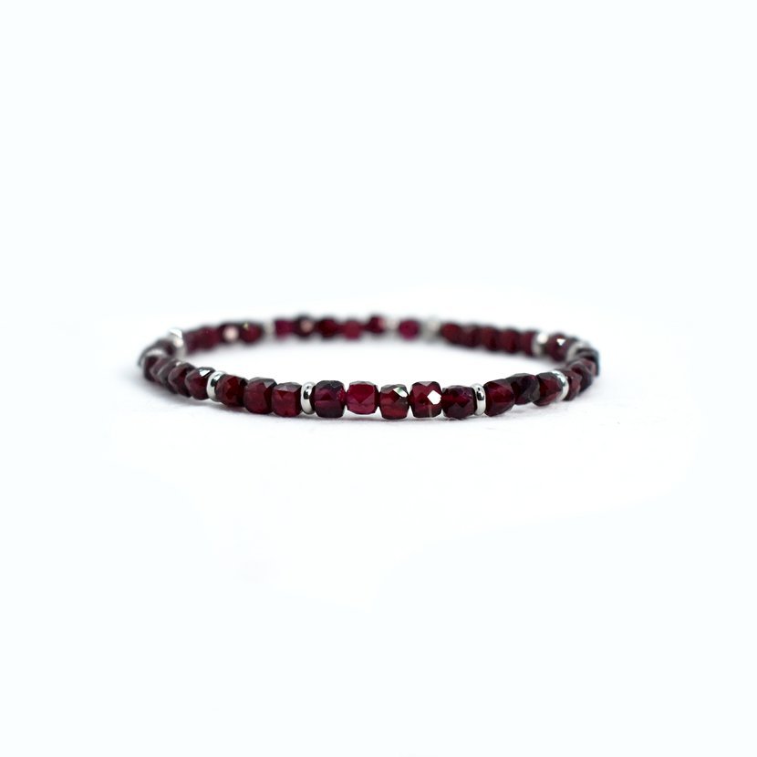 Náramek z granátu. Korálky jsou broušené hranaté, což vypadá velmi zajímavě a elegantně.