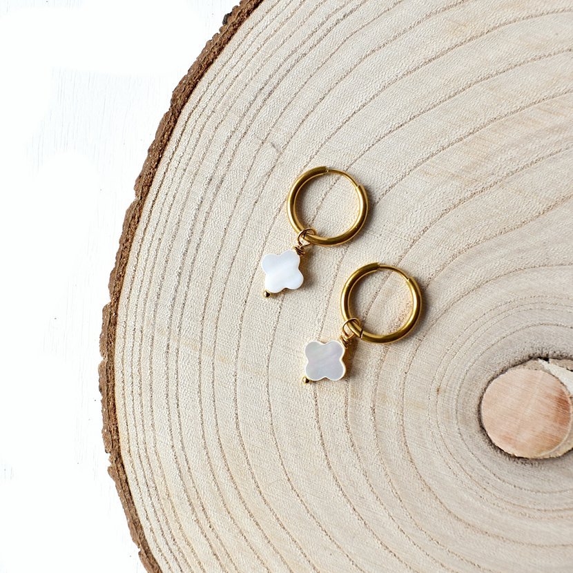Náušnicové kroužky se 4čtyřlístkem s perleti