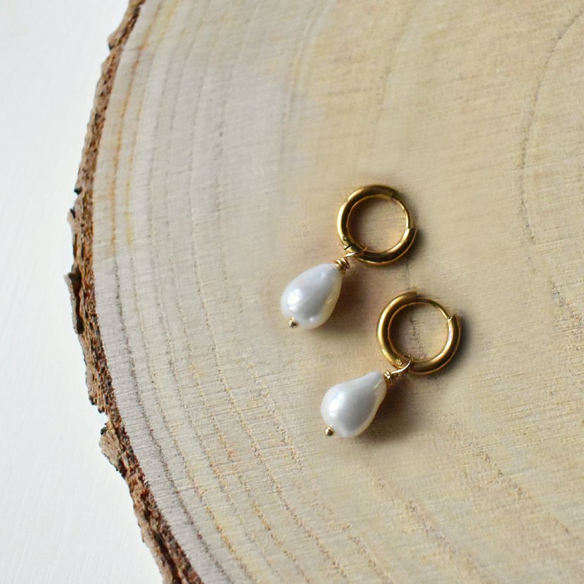 Náušnicové kroužky se zavěšenou říční perlou.