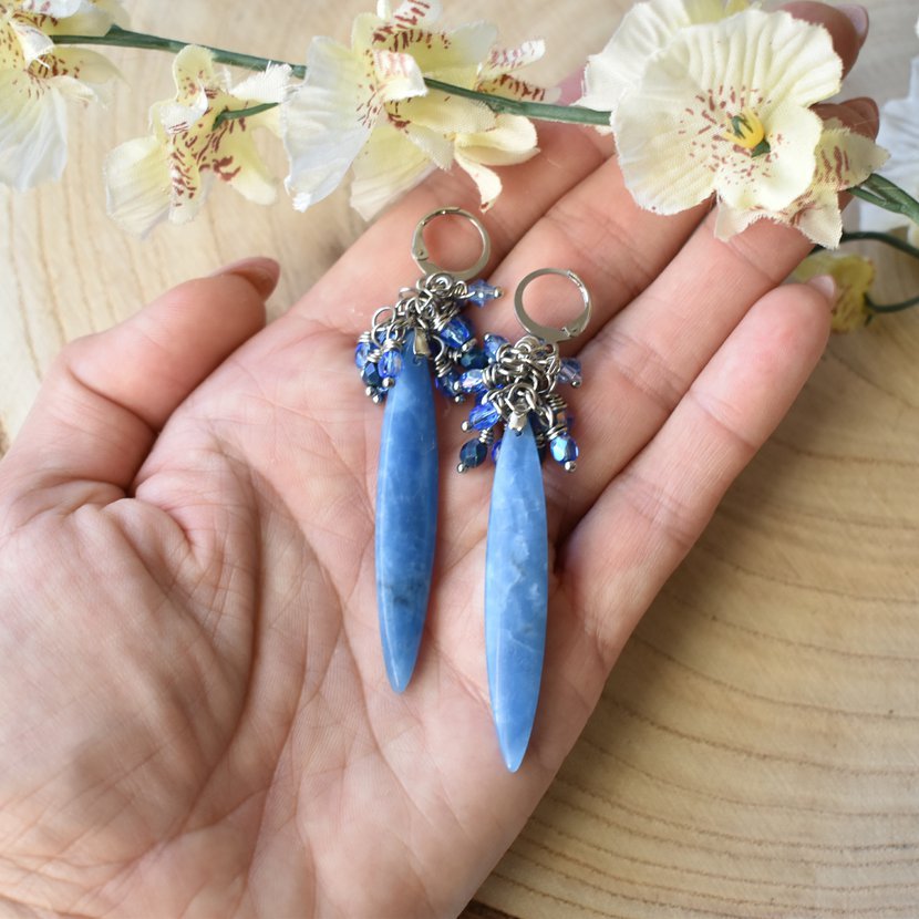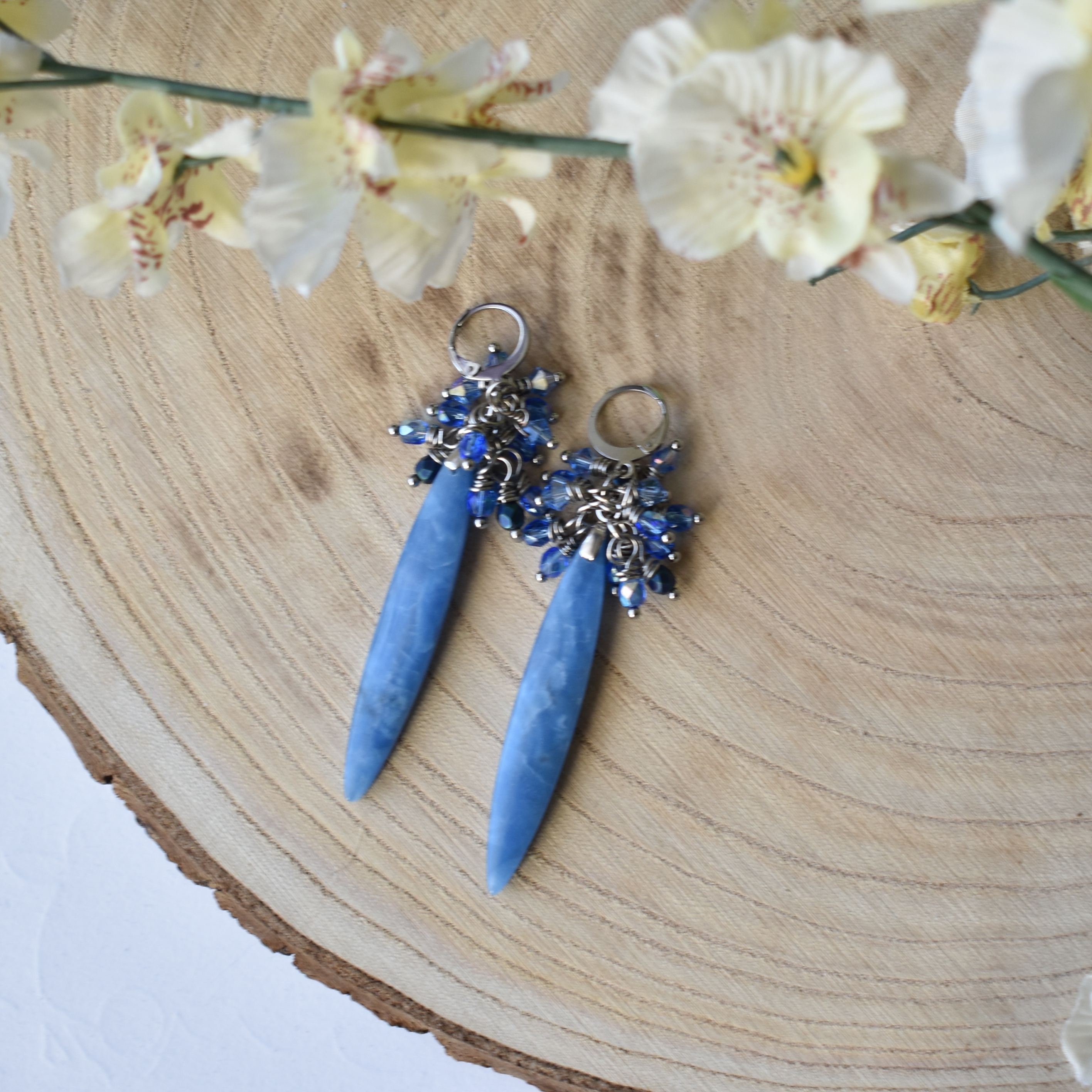 Luxusní Boho náušnice - kapky krásného modrého jaspisu a hrozny z českých ohňovek.