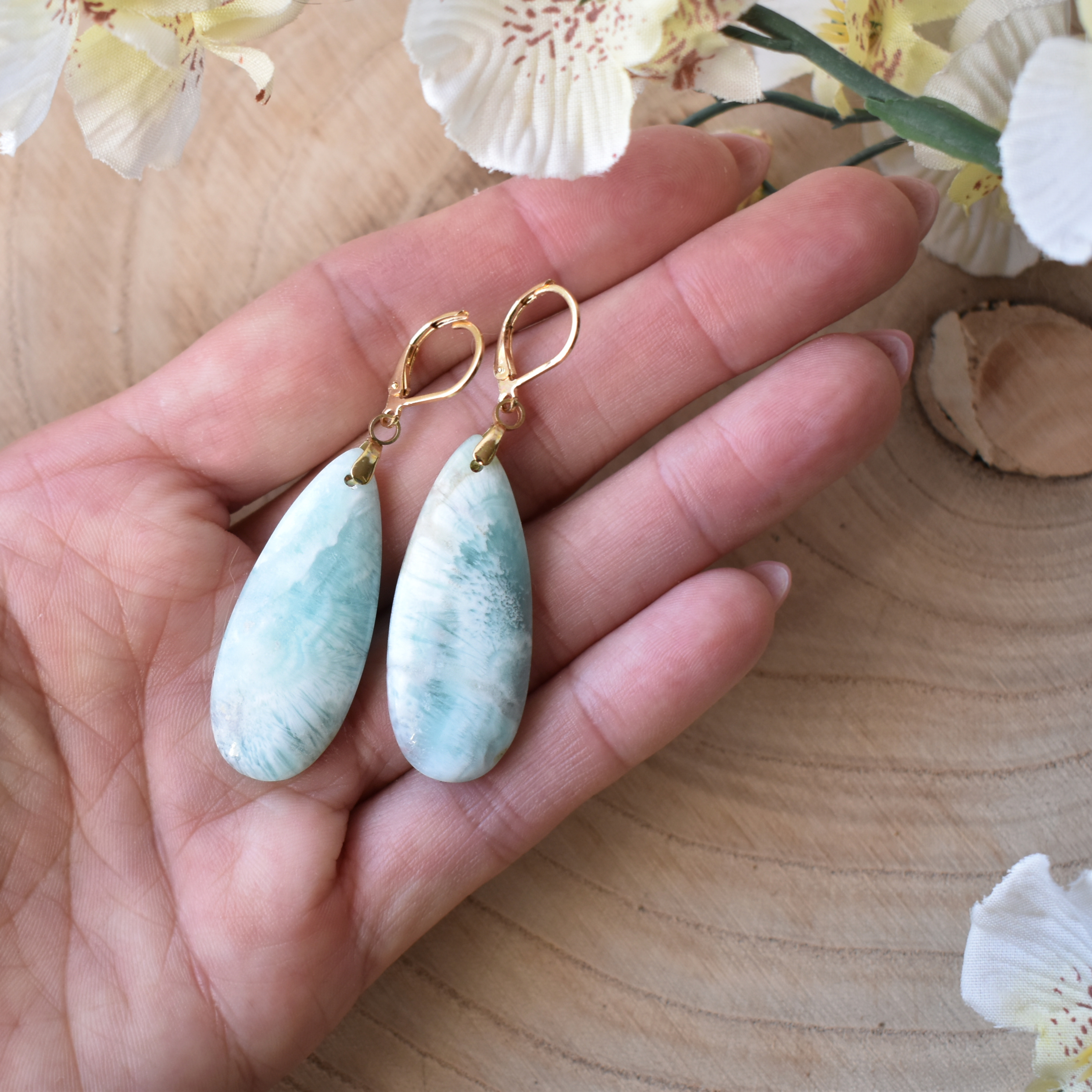 Délka náušnice 5,5 cm. Z toho klapky 1,5 cm a kámen 3,5 cm.
