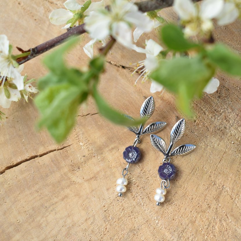 Lístky z nerez oceli, doplněné zavěšeným kvítkem z českého skla.