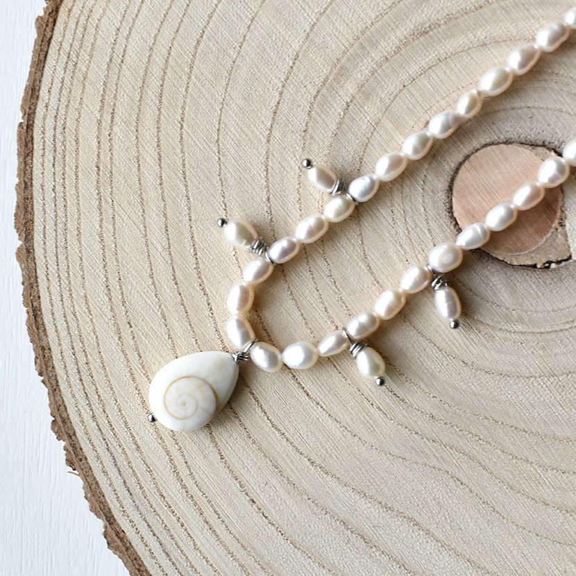 Perlový náhrdelník s přívěšky lastur