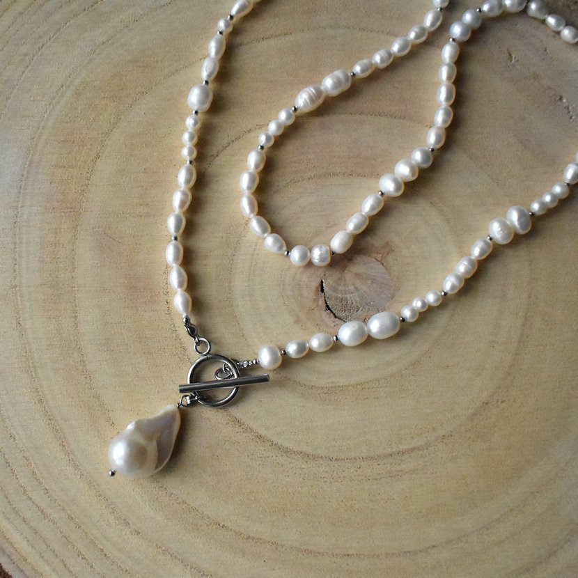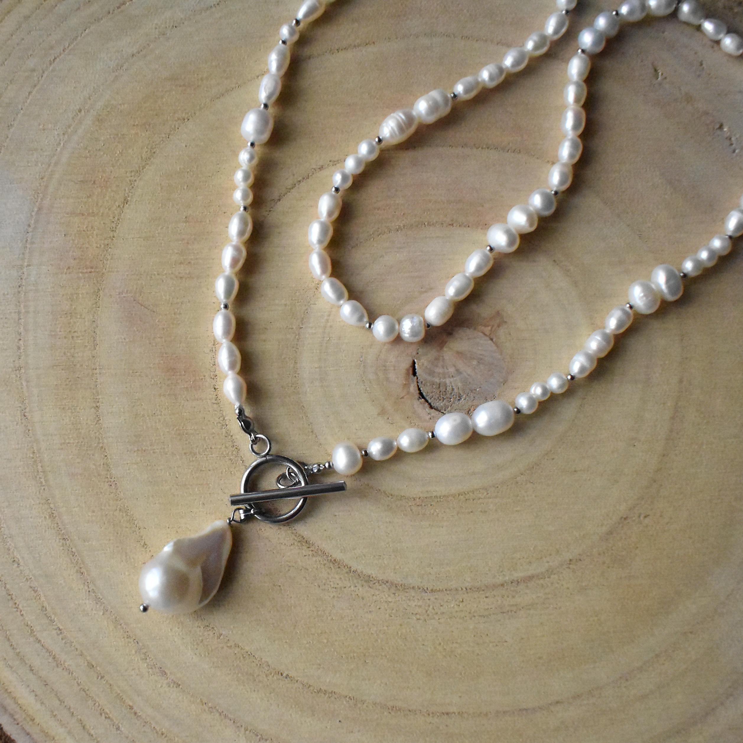 Perly různých velikostí na krásném delším náhrdelníku doladí každý výš outfit k dokonalosti.