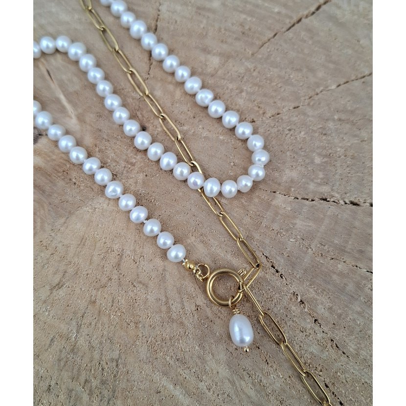 Perly a ocelový řetízek