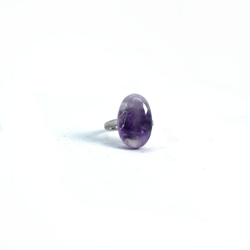 Ametyst. Kámen o velikosti cca 12/16 mm na ocelovém prstýnku pozlaceném
