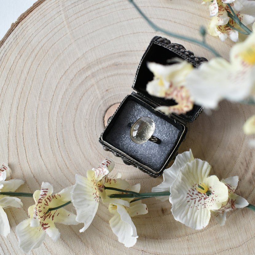 Průzračný citrín. Kámen o velikosti 8/12 mm na ocelovém prstýnku
