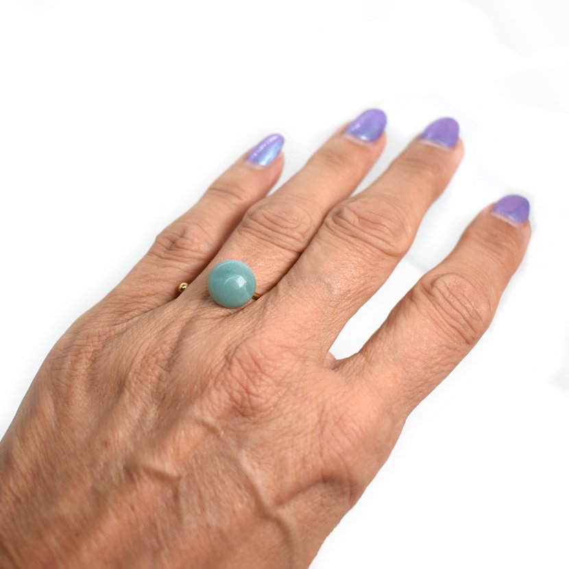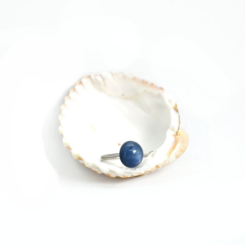 Kyanit. Kámen o velikosti 10 mm na otevřeném prstýnku