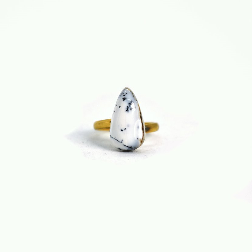 Dendritický opál. Kámen o velikosti 10/16 mm na ocelovém pozlaceném prstýnku
