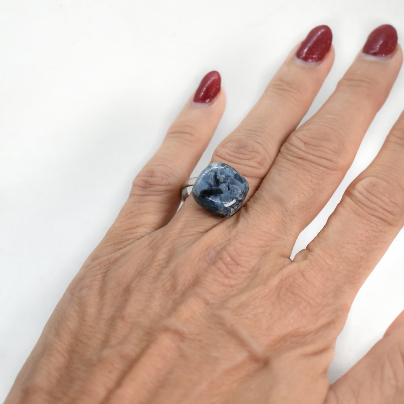 Pietersit. Dokonalý kámen o velikosti cca 12/12 mm na ocelovém prstýnku