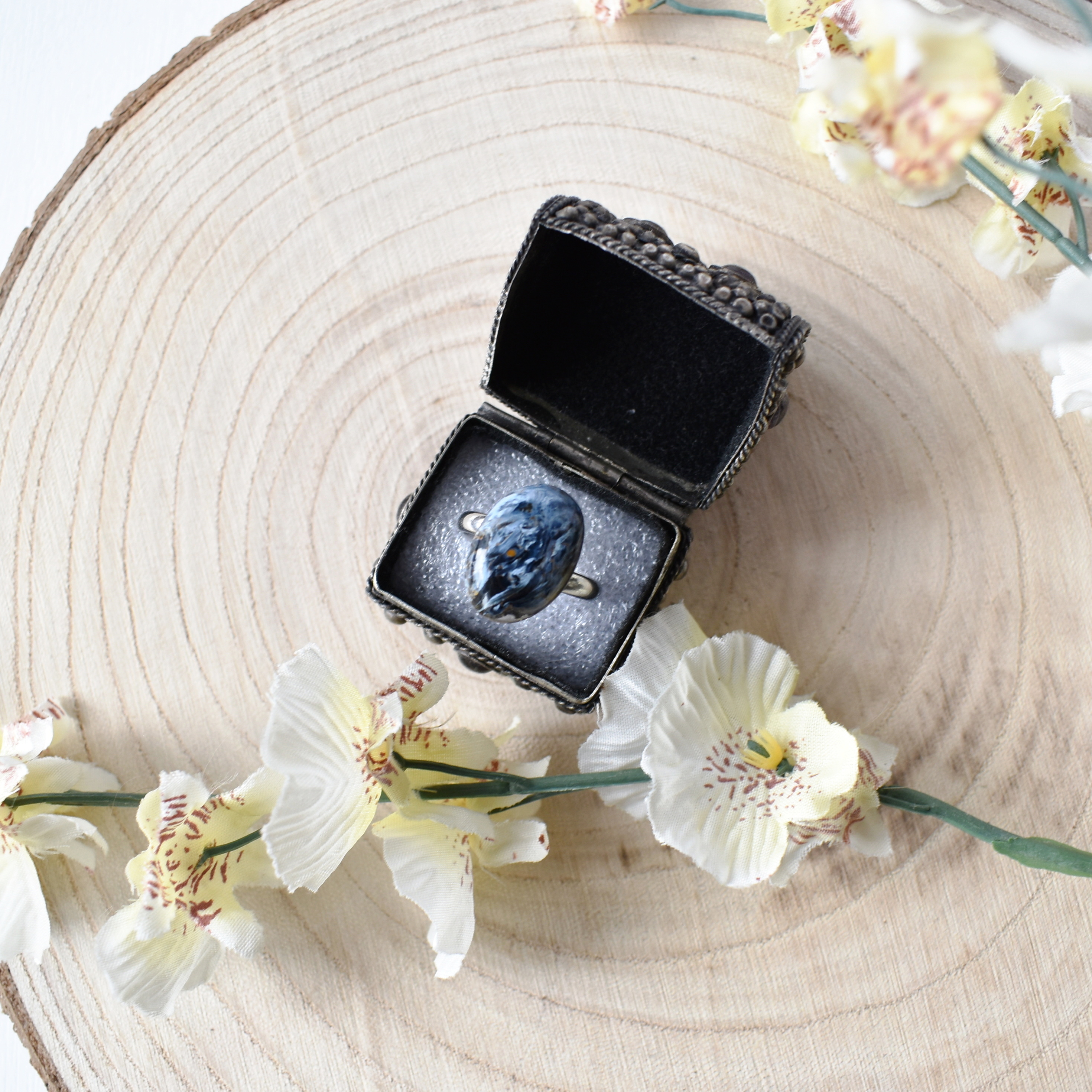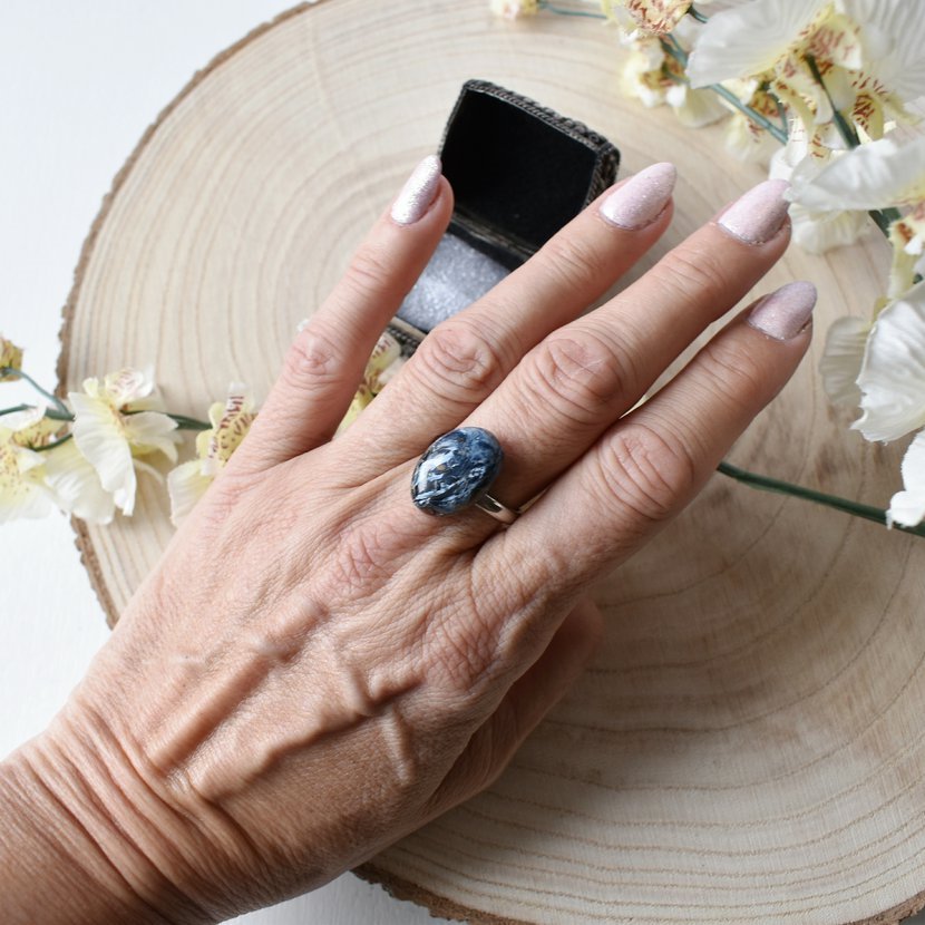 Pietarsit. Kámen o velikosti 13/18 mm na ocelovém prstýnku