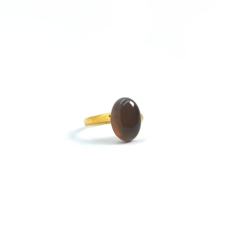 Záhněda. Kámen o velikosti 10/14 mm na ocelovém pozlaceném prstýnku