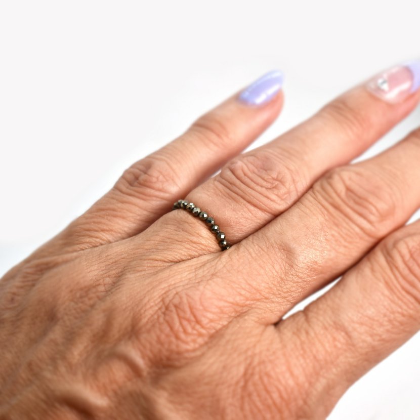 Prstýnek je vyroben z drobných pyritů velikosti 2 mm.