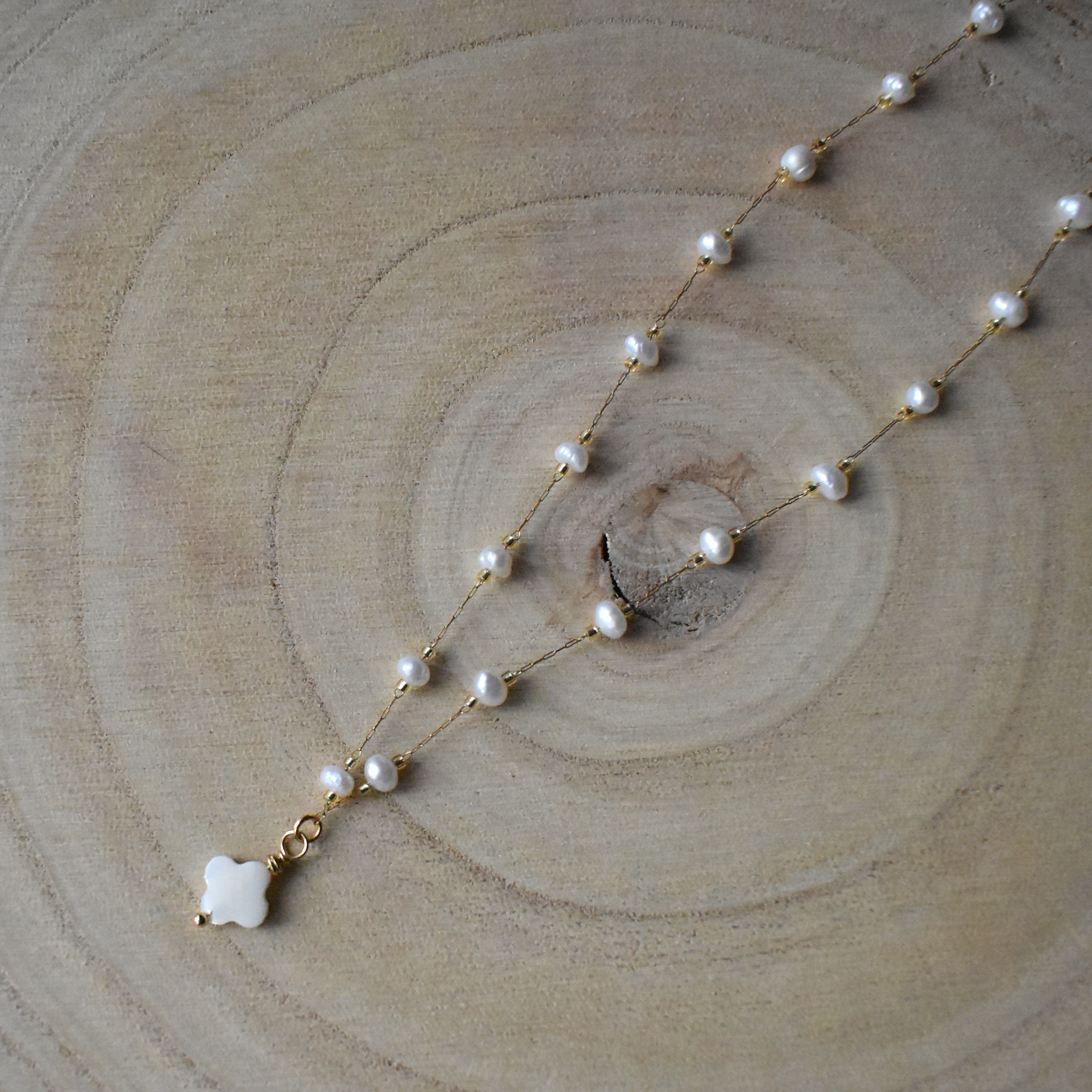 Jemné říční perly. Největší klasika a nekrásnější doplněk každé ženy. Lehkost jim dodává řetízek ze zlacené nerezi